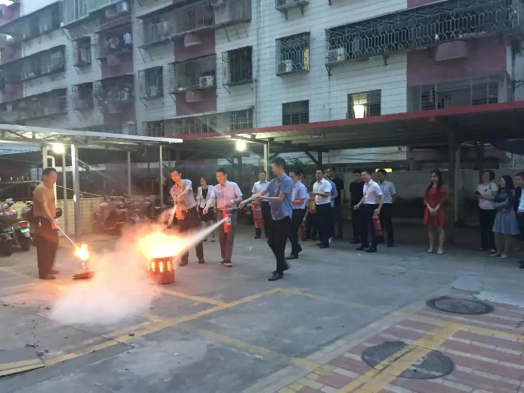 疏散結(jié)束后,公司各部門安全員、義務(wù)消防員在集合現(xiàn)場(chǎng)演示了滅火器的操作和使用,部分員工進(jìn)行了滅火器現(xiàn)場(chǎng)操作練習(xí)。